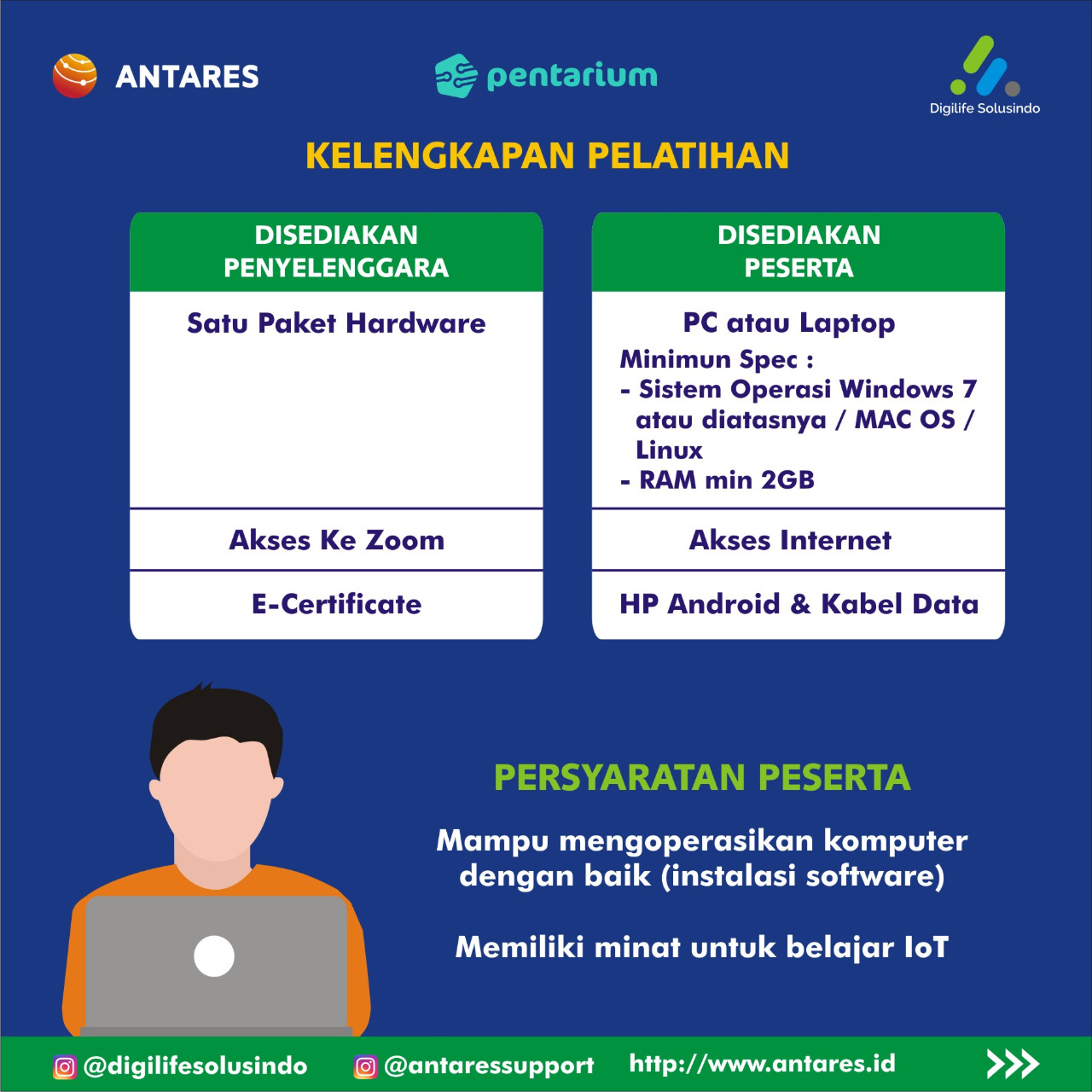 Pentarium juga menyediakan paket Hardware untuk mendukung pelatihan pembelajaran IoT anda.
